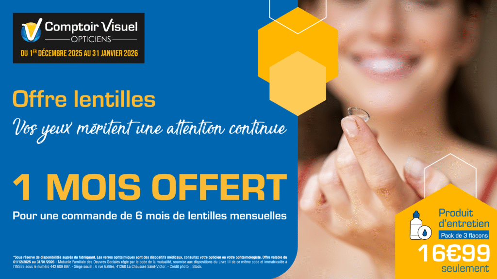 Équipements optiques, lentilles de contact, solaires, bilan visuel, tables de téléophtalmologie